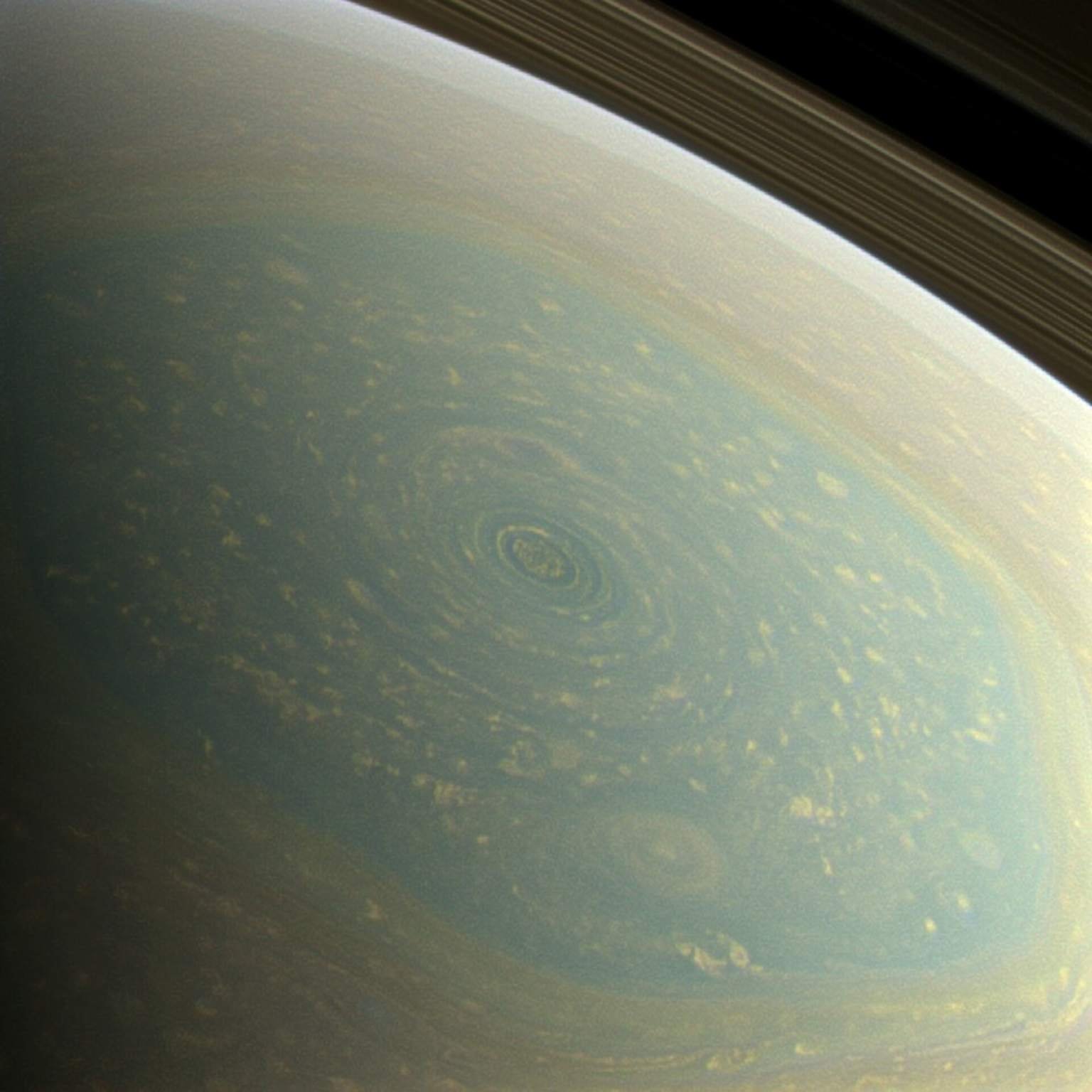 Интересно: если представить, что вы пилот космического корабля, то подлететь к полюсу Сатурна — это как увидеть циклон размером с пол‑Солнечной системы, который к тому же выглядит так ровно, будто его рисовал перфекционист‑дизайнер.